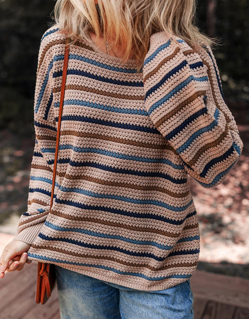 Multicolour Striped Knitted Drop Shoulder Round Neck Sweater